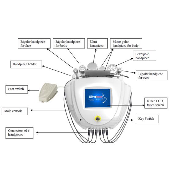 6 handle RF Ultrasonic Cavitation body Slimming Machine For cellulite reduce facial machine 6 in 1